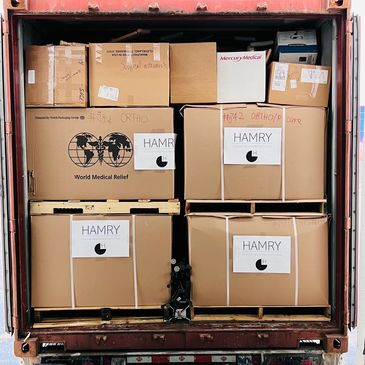 15 tons of emergency supplies, surgical instruments, and medical aid